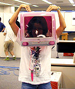 iMUGのトップページにEXPOの写真があった。随分顔がでかく写っているぞ(^^;;>自分2000/06/01 “ボンダイブルーiMac筐体 \31,800”